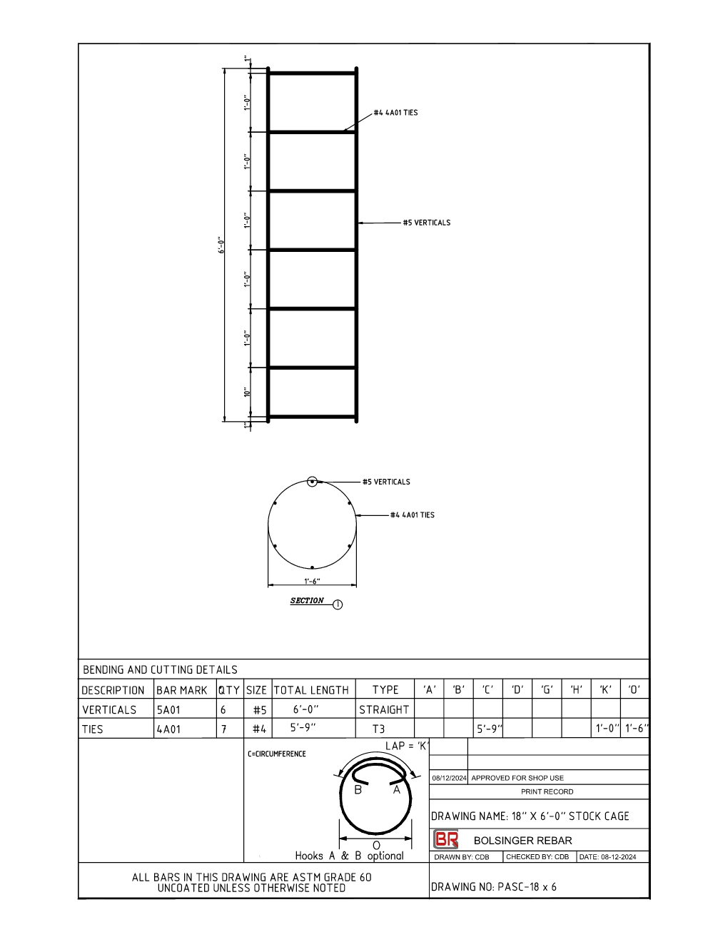The PASC-18X6 is a robust, jobsite-ready 18" diameter pre-tied rebar cage, engineered for short foundation structures such as drilled shafts, caissons, piers, and columns that require a larger diameter and reliable reinforcement. Designed for efficient field use, this cage saves time and labor while delivering high structural integrity.
