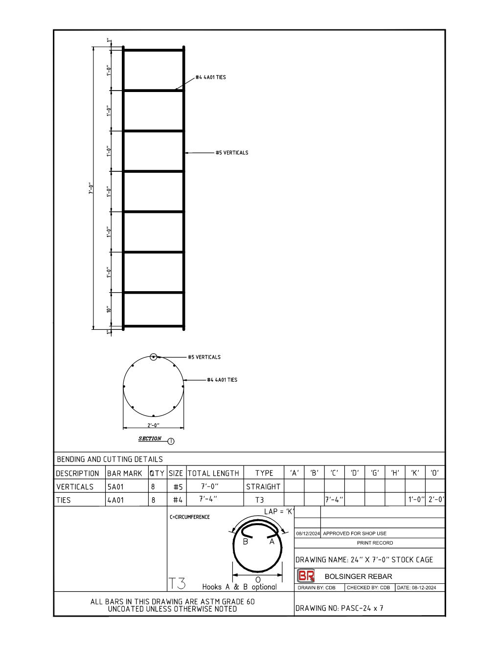 24" x 7'-0" Stock Rebar Cage (PASC-24X7)